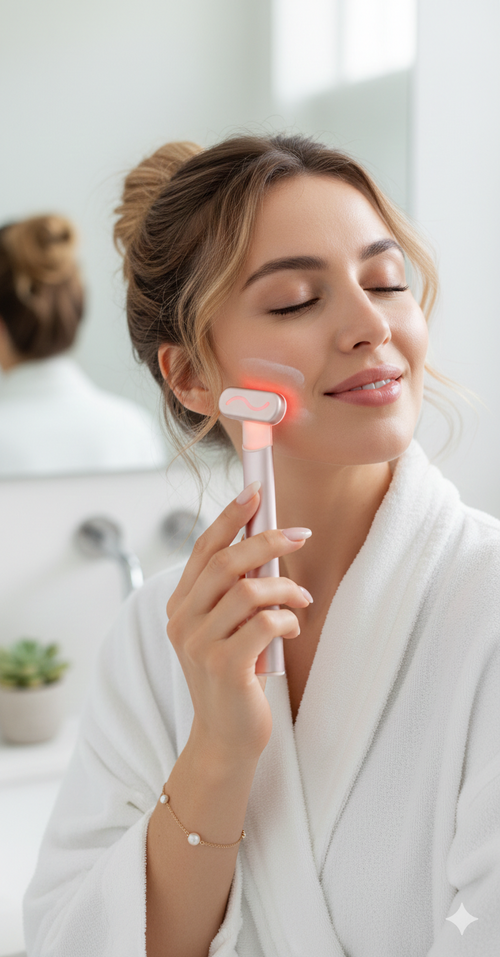 La microcorrente EMS (Stimolazione Muscolare Elettrica) invia segnali a bassa tensione che imitano le correnti naturali del corpo. Questo stimola i muscoli facciali, favorendo la produzione di collagene ed elastina per un effetto lifting e tonificante naturale.
